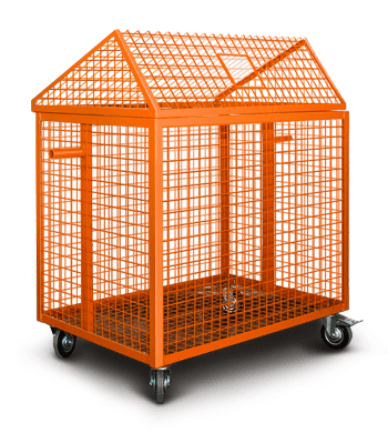 Контейнер изготовлен из оцинкованного материала и снаружи имеет полимерное покрытие RAL 2004 (оранжевый). Диаметр колес: 160 мм.