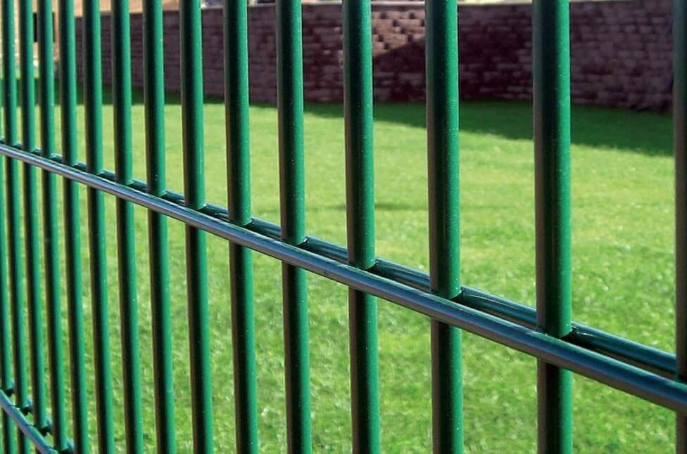 Панель ограждения изготовлена из стальной горячеоцинкованной проволоки методом многоточечной контактной сварки. В своей конструкции сварная панель имеет сдвоенные горизонтальные прутки.